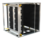 表面电阻:10 6 -10 9 Ω分普通型、耐高温型 外形尺寸:355×320×563mm 可存放PCB板50块 使用PCB板规格:350*(50-250) mm 侧板导向槽.槽沟深度3.5mm, 沟宽5mm,节距10mm 上下底板为金属板,螺丝调节设计(可进老化房),操作简便